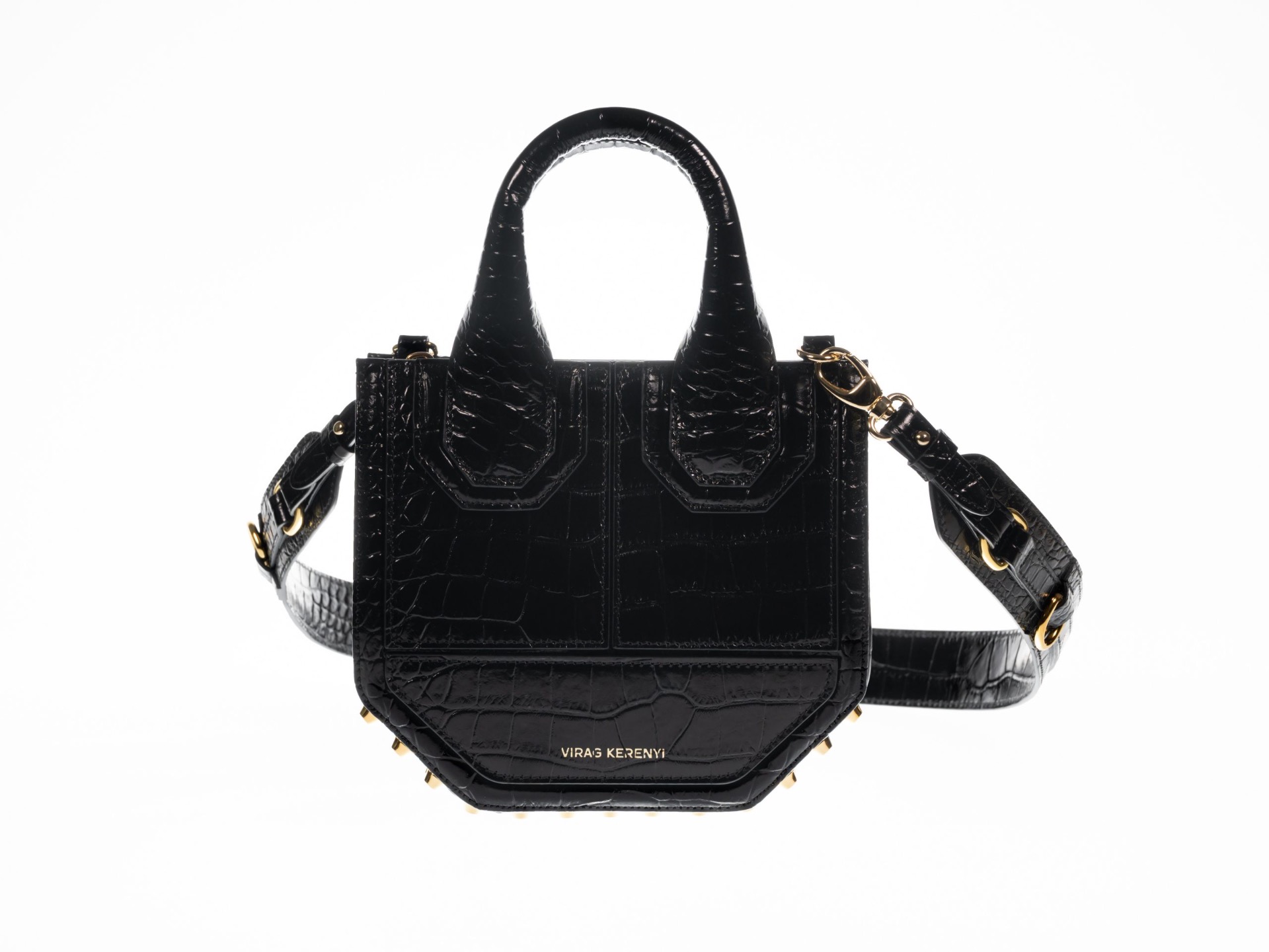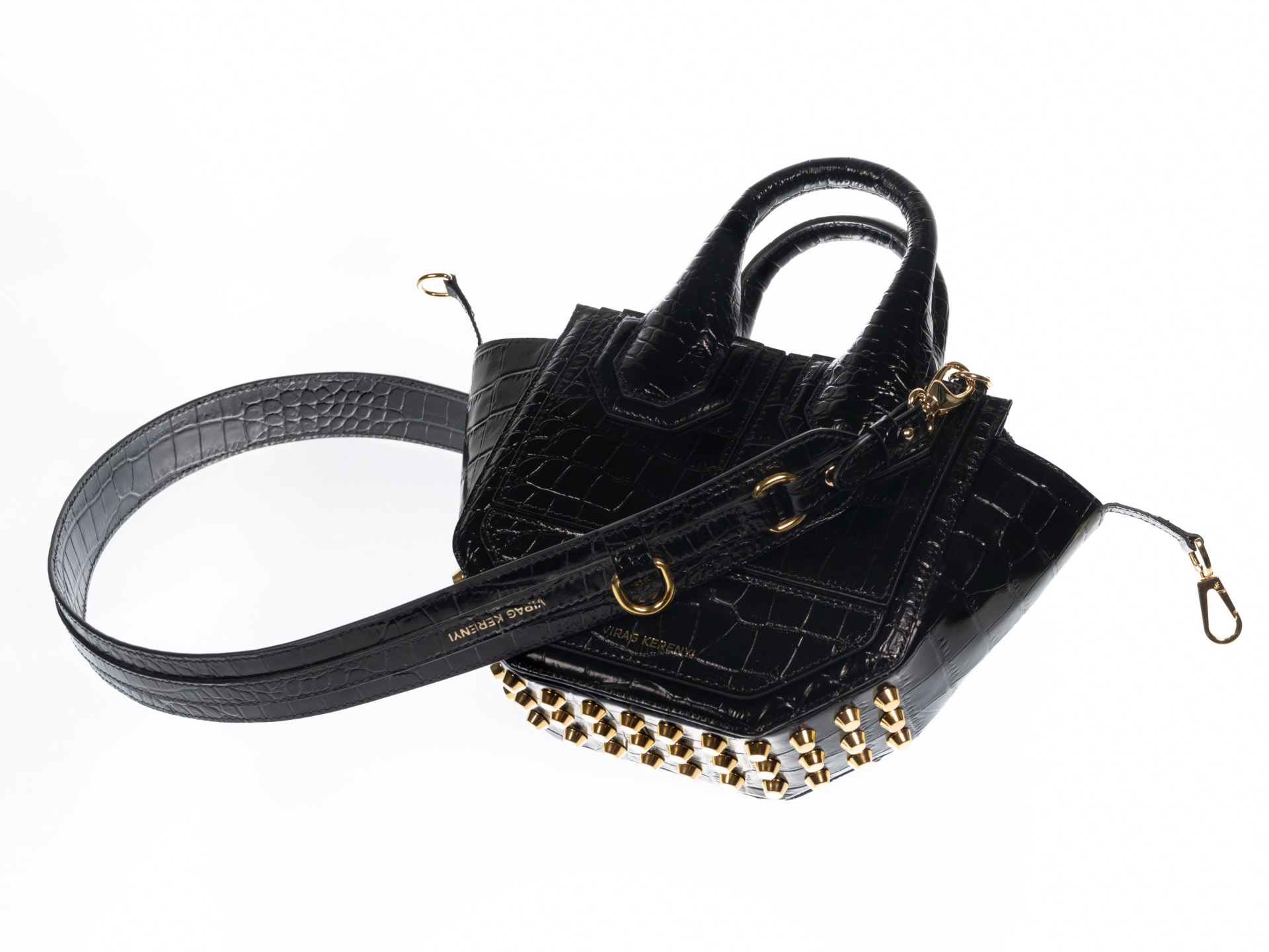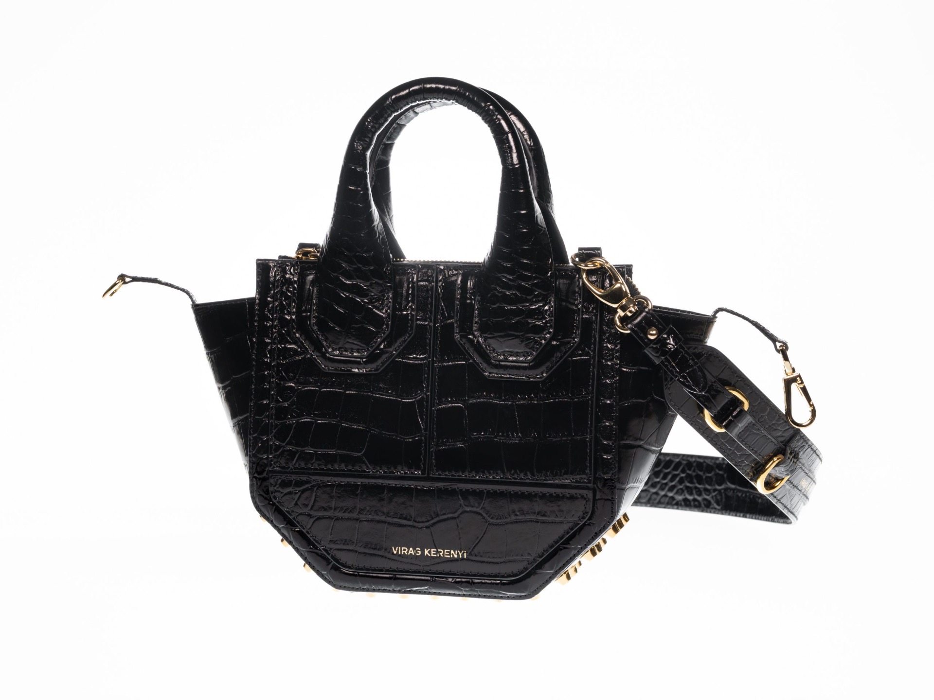 Kerényi Virág táska BABY ROSS /Black Lack Crocco Gold/